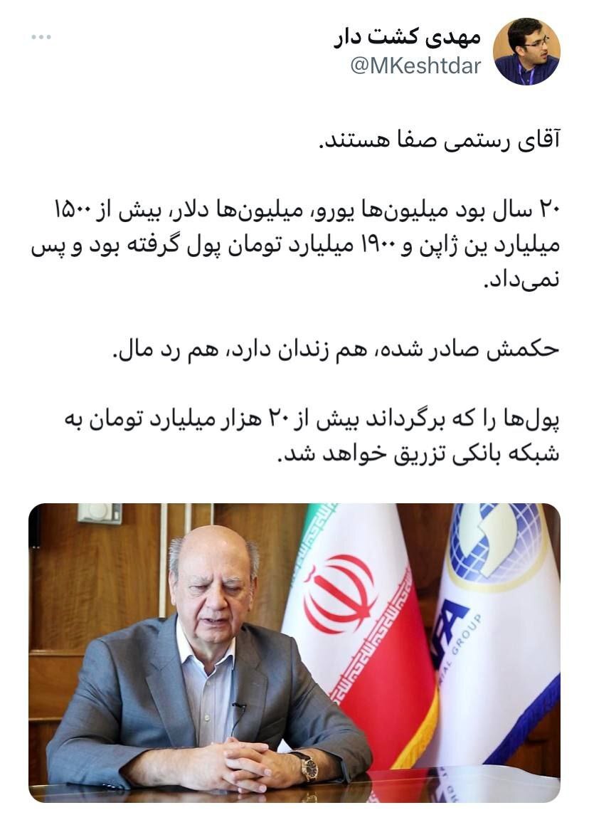 ۲۰ سال بود میلیون‌ها یورو، میلیون‌ها دلار، بیش از ۱۵۰۰ میلیارد ین ژاپن و ۱۹۰۰ میلیارد تومان پول گرفته بود و ‌پس نمی‌داد.
