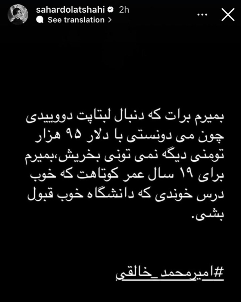 واکنش خانم بازیگر به قتل امیر محمد خالقی سحر دولتشاهی به قتل امیر محمد خالقی در فضای مجازی واکنش تلخی نشان داد. وو برگزیده در 15:27 یکشنبه 28 بهمن 1403 به گزارش پیامد نیوز، سحر دولتشاهی بازیگر برجسته سینما و تئاتر، در استوری اینستاگرامش پیامی را منتشر کرد. اشتراکگذاری