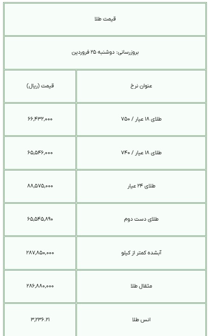 قیمت طلا امروز دوشنبه ۲۵ فروردین ۱۴۰۴؛ باد طلا خوابید!