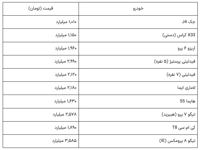قیمتها در بازار خودرو ترمز برید! + جدول یکشنبه 14 اردیبهشت 1404