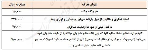 مطابق جدول پیوست این بخشنامه، حق تمبر هر برگ چک ۱۵ هزار ریال تعیین شده و برای اسناد تجاری و مالکیتی از جمله بارنامه‌های دریایی و هوایی و اوراق بیمه، ۳۷۵ هزار ریال حق تمبر در نظر گرفته شده است.