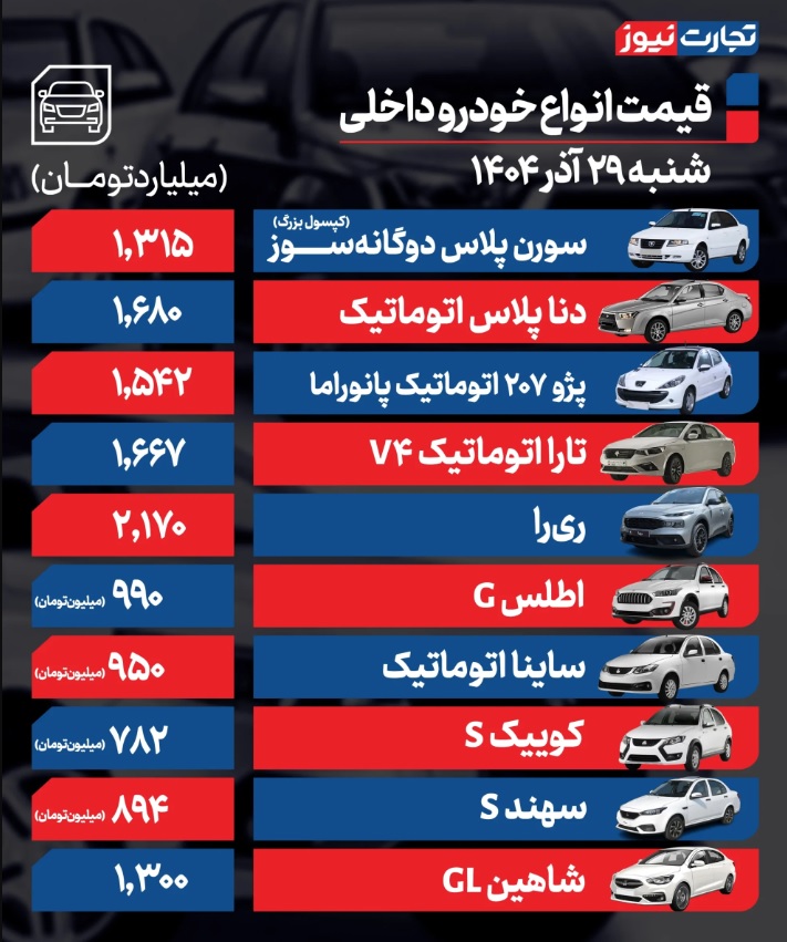 قیمت خودروهای داخلی