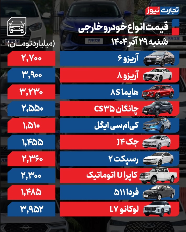قیمت خودرو امروز 29 آذر 1404 /بازدهی هفتگی بازار خودرو +جدول